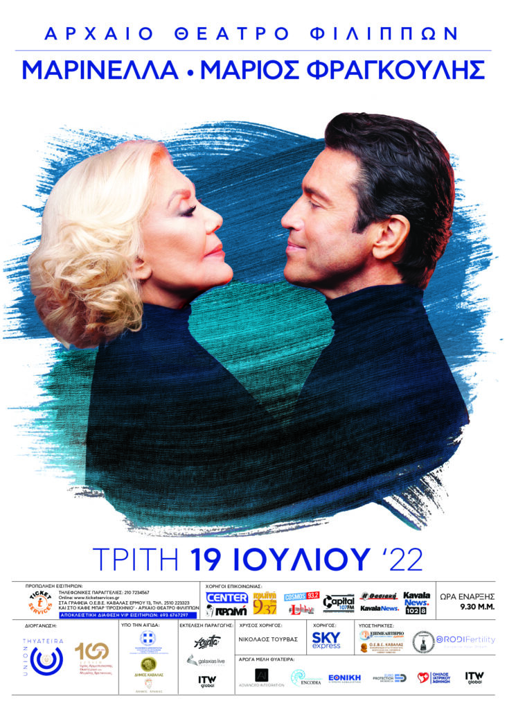Marinella and Marios Frangoulis, with their unsurpassed performance, will enchant the audience on July 19th at the Ancient Theatre of Philippi in Kavala, setting another milestone for Thyateira Union that meets its history in Philippi. The area that continues to be a symbol of the power of the ancient Greek world as the birthplace of the first Christian community in Europe and the starting point for the spread of Christianity throughout the world!